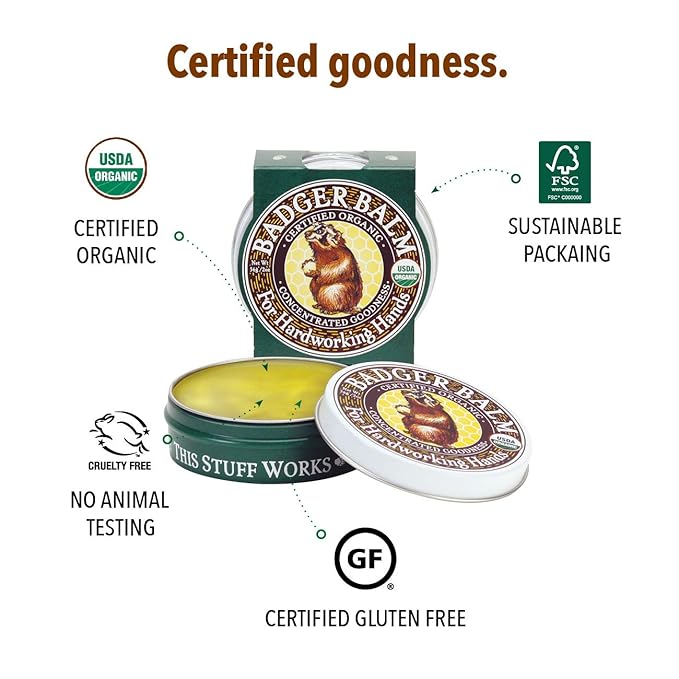 - ORGANIC HAND BALM IN A TIN - Badger Balm is an ultra-rich, ultra-moisturizing balm for rough, dry hands and skin. Gentle enough for even the most sensitive skin.