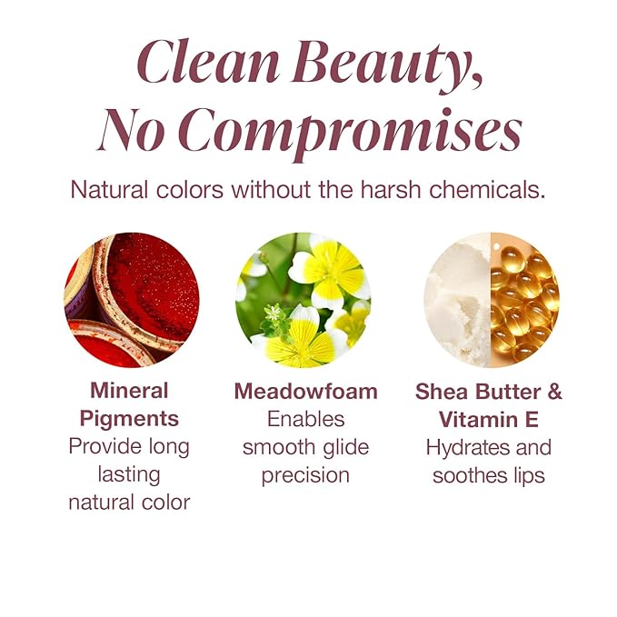 - Natural Formula: Get precision lines without feathering; Formulated with Shea Butter, Meadowfoam and Vitamin E to hydrate and soothe delicate lips; Vegan, toluene free, camphor free