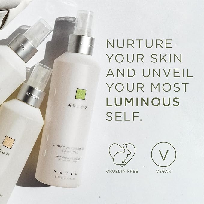 Zents Luminous Cashmere Body Oil (Oolong Fragrance) | Moisturizing Body Oil with Vitamin E & Organic Coconut Oil | Softens & Smooths Skin | 8 fl oz