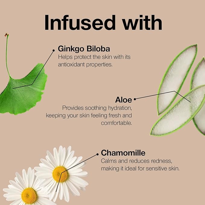 - BOTANICAL AND VITAMIN INFUSED COSMETICS: Infused with chamomile, apricot, aloe, ginkgo biloba, and ginseng that help with skin conditioning and nourish the face.