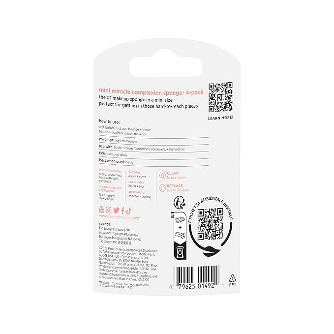 - Value Pack Includes: (4) Real Techniques Mini Miracle Complexion Sponges to blend makeup in hard-to-reach areas. Pack size makes for easy refills- don’t forget to replace your sponge every 30 days