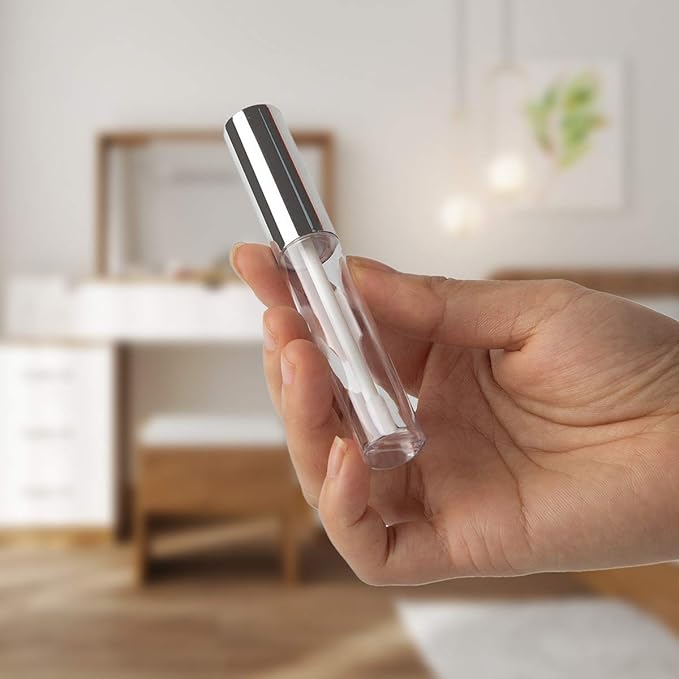 GTHER 10PCS 10ML Empty Lip Gloss Containers Tube with Wand, Refillable Lip Balm Bottles, Lipstick Sample Container and Funnel and Rubber Stoppers for Girls DIY Lip Samples, Silver Top