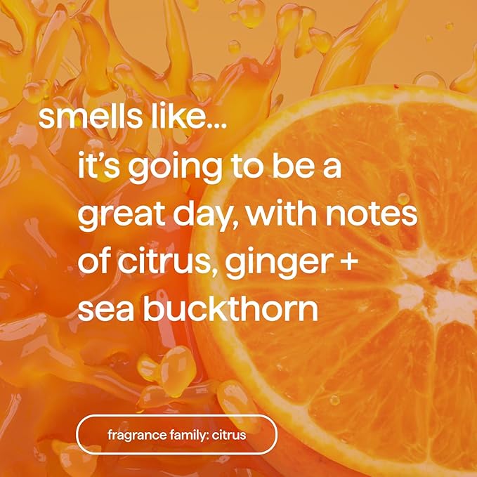 - Energy Boost fragrance is infused with citrus, ginger + sea buckthorn and smells like it's going to be a great day.