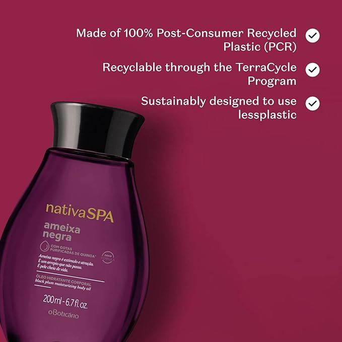 Nativa SPA by O Boticário, Black Plum Body Oil, Scented Moisturizer, Enriched with Purified Quinoa Drops to Boost Hydration, 6.8 Ounce