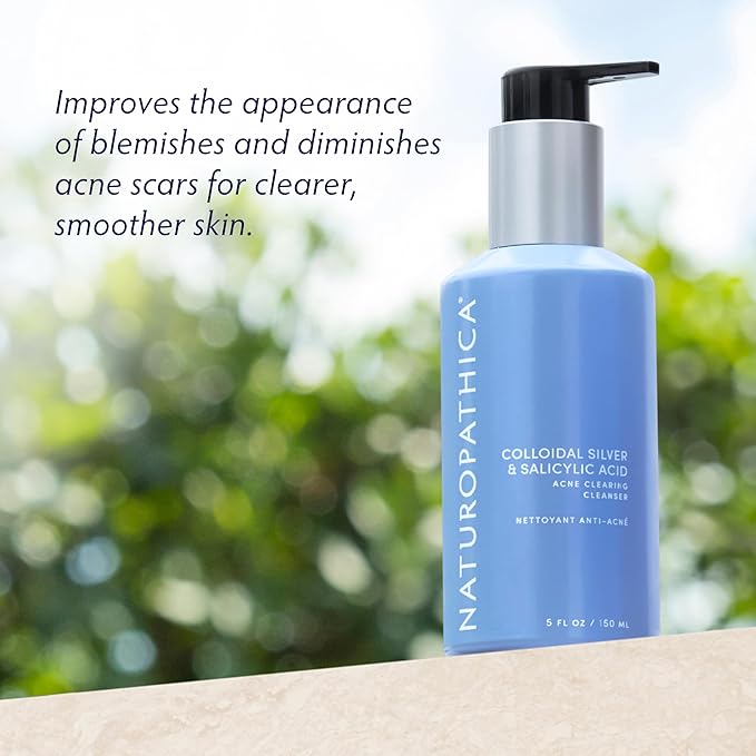 Naturopathica Colloidal Silver and Salicylic Acid Acne Clearing Cleanser, Reduce Blemishes and Acne Scars, Clarifying Face Wash for Men and Women, 5 fl oz