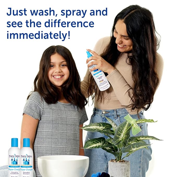 - Fairy Tales Tangle Tamer conditioner for kids and is enriched with Keratin and Vitamin B. These ingredients strengthen, smooth and detangle all hair types, and is great for the whole family!