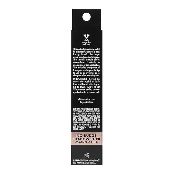 - HIGH-PIGMENT METALLIC EYESHADOW: The e.l.f. No Budge Shadow Stick is a versatile cream eyeshadow stick that delivers high-pigment, metallic colour with stay-put power.
