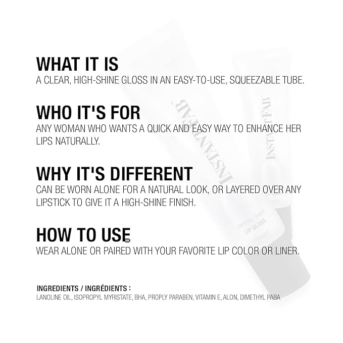 STUDIO LIMITED Instant Fab Crystal Shiny Clear Lip Gloss Long Lasting Ultra Hydrating Plumping Lip Gloss for women girls Value Pack 14ml/ 0.47oz (Clear, 12 Pcs)