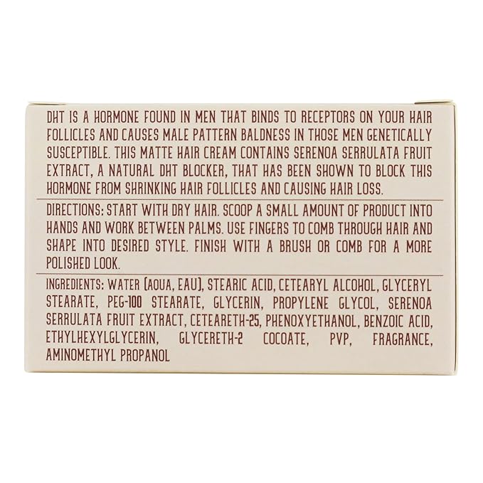 Suavecito Pomade Matte Hair Cream With DHT Blocker For Hair Regrowth - Low Shine Light Hold For Styling Thinning Hair To Look Thick & Full With Volume