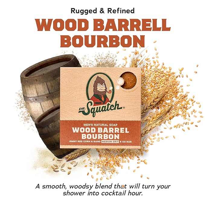 - RAISE THE BAR - Upgrade your shower with our sudstastic soaps featuring Dr. Squatch’s favorite scents: Wood Barrel Bourbon, Gold Moss, Bay Rum & Cool Fresh Aloe