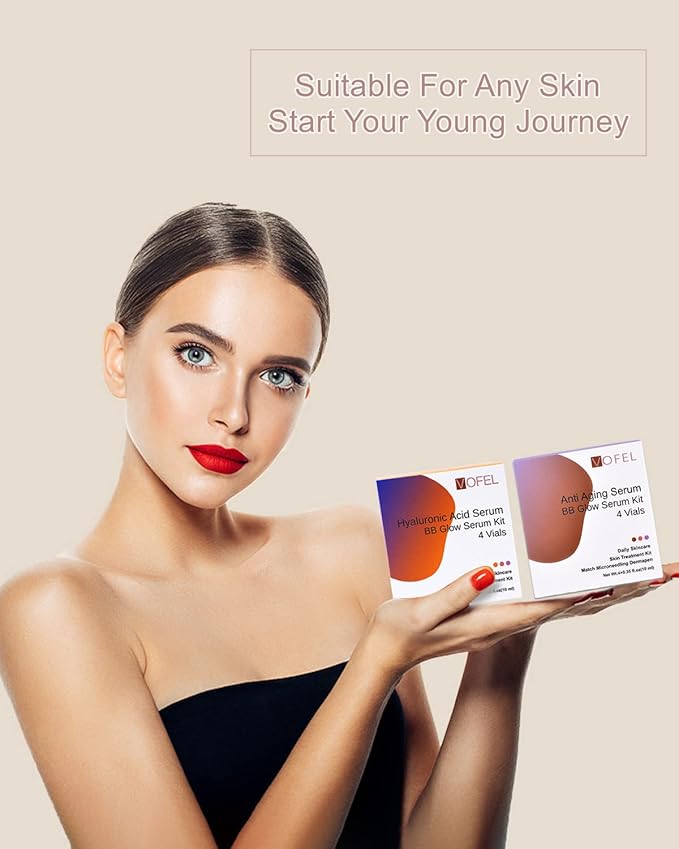 - SUITABLE ALL SKIN: Suitable for all skin types including dry, oily, sensitive and mature skin. BB glow pigments in gift box contains 2 kits 8 vials hyaluronic acid serum and anti aging serum. Start your journey of becoming beautiful and young!