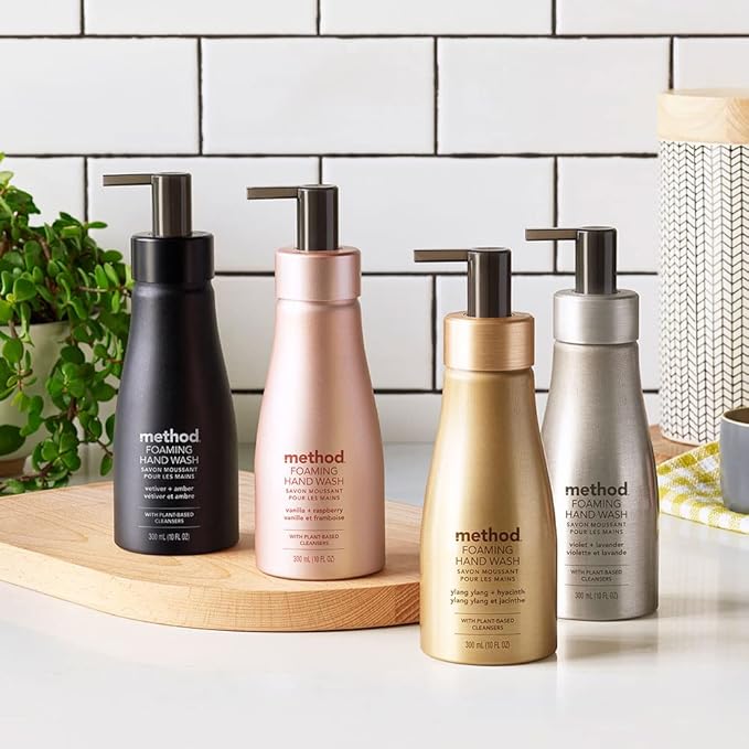 Method Premium Foaming Hand Wash, Ylang Ylang + Hyacinth, Reusable Gold Aluminum Bottle, Biodegradable Formula, 10 fl oz (Pack of 3)
