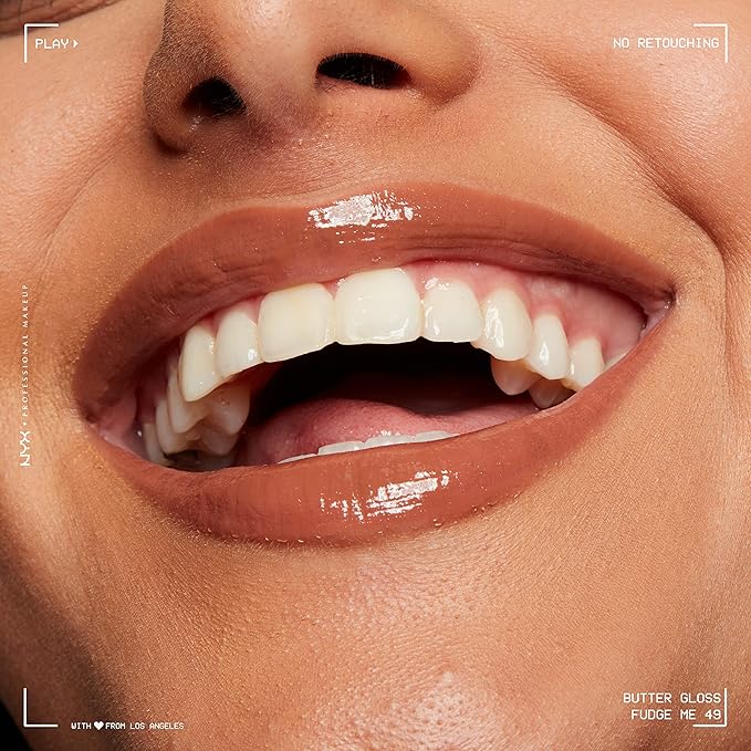 NYX PROFESSIONAL MAKEUP Butter Gloss Brown Sugar, Non-Sticky Lip Gloss - Fudge Me (Warm Brown) (Pack of 2)