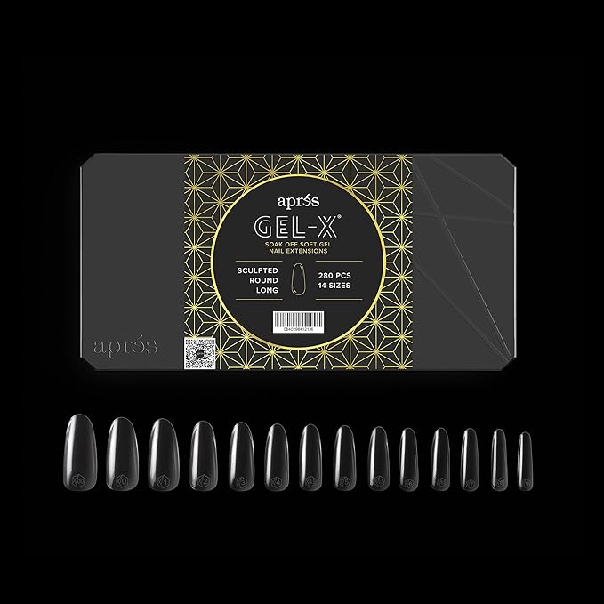 Apres Gel-X® Round Box of Nail Tips | 280 Gel-X Tips, Soft Tips, 14 Sizes 00-9 | Half-sizes Included (Sculpted Round Long, 280.00 Fl Oz (Pack of 1))