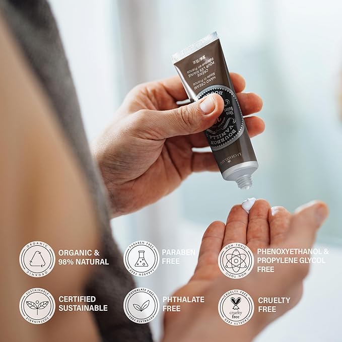 La Chatelaine 20% Shea Butter Hand Cream Travel Size, Men, Unisex, Organic Argan Oil, Moisturizing, Nourishing, Extra-Rich Hand Lotion, Made in France, Paraben Free, 1 oz / 30ml (Bourbon Vanilla)