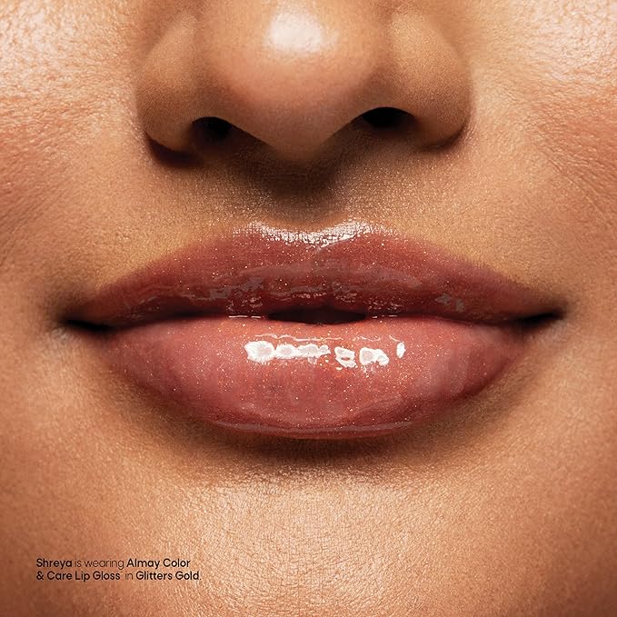 Almay Color & Care Hydrating Lip Gloss, Soft Natural Hues, Prebiotic Complex, Hyaluronic Filling-Sphere Technology, 300 Glitters Gold, 0.1 Fl Oz