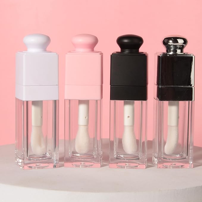 COSIDEA 18PCS Empty 8ML Square clear Lip Gloss Tube Silver big doe foot wand lipgloss tubes for Lip oil tint bottles container… (Pink)