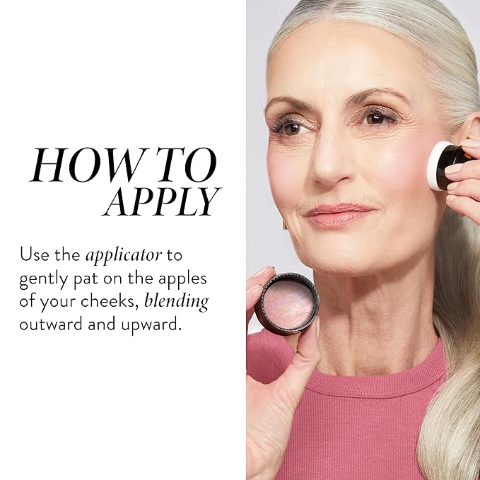 - HOW TO APPLY: Use the applicator to gently pat on the apples of your cheeks and blend outward and upward.