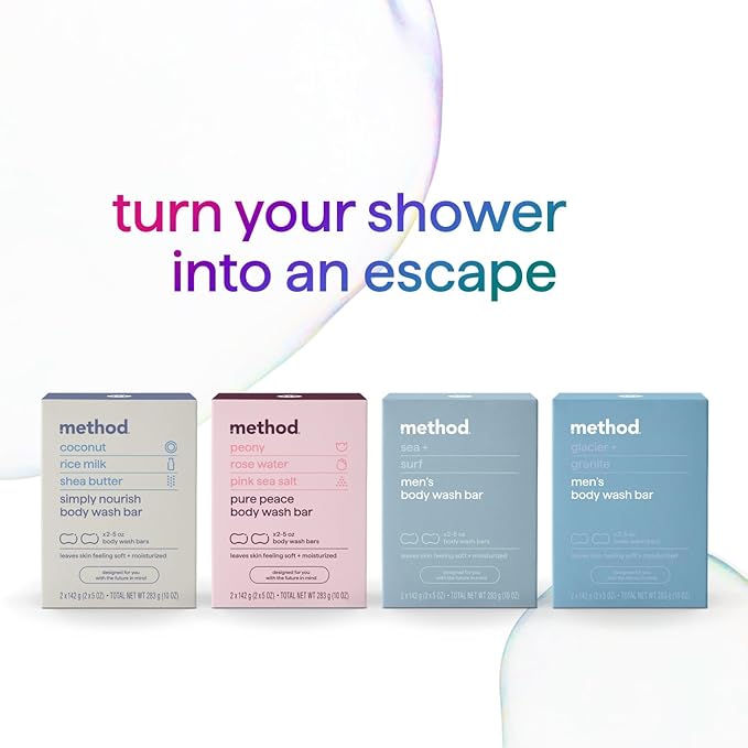Method Bar Soap, Simply Nourish, Coconut, Rice Milk + Shea Butter notes, Plastic Free, 2 bars, 5oz each