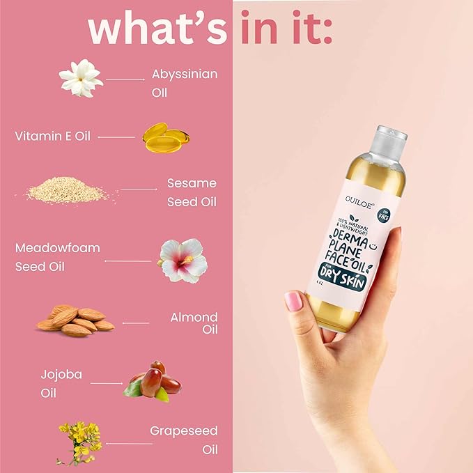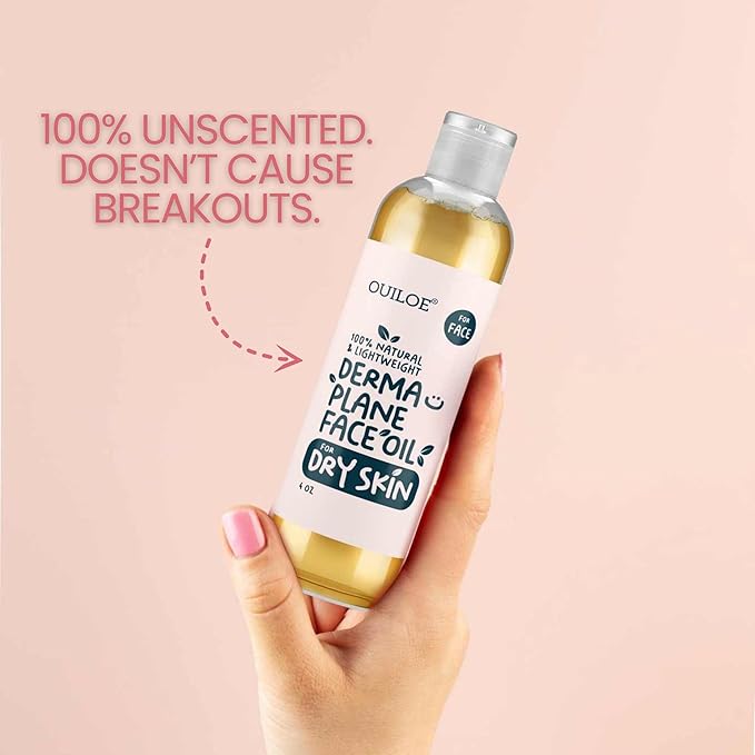 Dermaplane Oil for Women with Dry Skin - Face Shaving Oil - Non Comedogenic, Fragrance Free, Natural & Lightweight - Use with Dermaplane Razor for Women Face, 2oz by Ouiloe