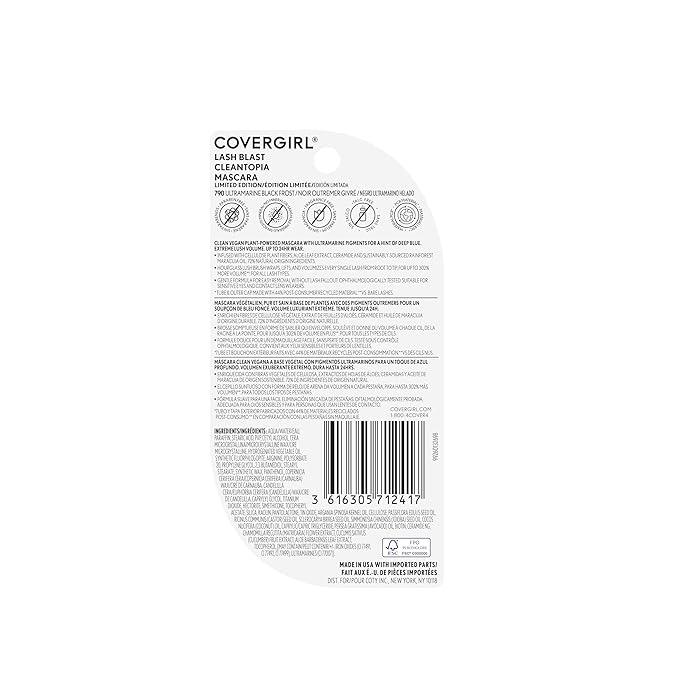 CoverGirl Lash Blast Cleantopia Volume Mascara, 790 Ultramarine Black Frost, Vegan Formula, Clean, Volumizing, for Sensitive Eyes, Doesn't Smudge, 0.32oz