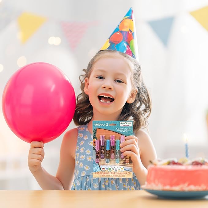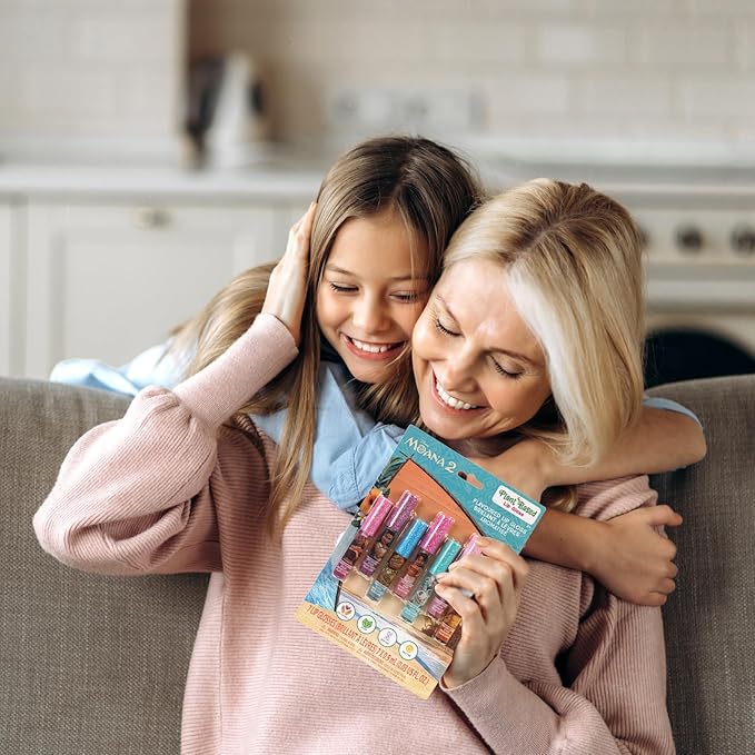 - This Moana 2 lip gloss set is perfect for the little voyager in your life, who just wants a bit of sparkle and adventure. With 7 different flavors to choose from your child will never get bored. What girl doesn’t love lip gloss that comes in all sorts of pretty and fun colors and scents? Not only do our lip glosses look and smell deliciously magical, but they’re made with naturally derived ingredients, so Mom definitely will love these as much as her little one does!