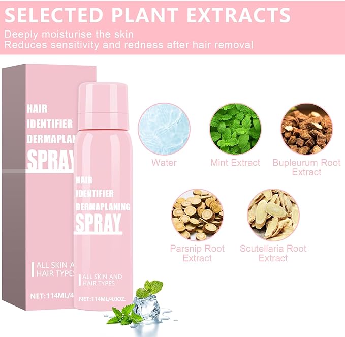1PC Hair Identifier Spray for Face Shaving Dermaplaning Tool Skin Body for Women with 4 Face Razor for Skin Shaver Hair Removal Kit Suitable for all Skin Types