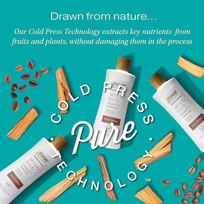 RAW SUGAR Simply Body Wash - Santal + Caffeine (25 Fl Oz, Pack of 1) Moisturizing & Soothing Bath & Shower Gel, Formulated without Sulfates & Parabens, Vegan