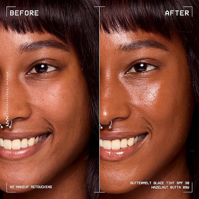NYX PROFESSIONAL MAKEUP Buttermelt Glaze Soft Glow Skin Tint + SPF 30, Up To 12HR Wear, 09 Hazelnut Butta