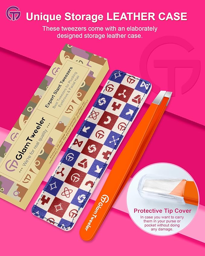- 【Exclusive TRAVEL-READY Storage case】The GlamTweeler Expert Slant Tip Tweezers come with an elaborately designed storage leather case, which makes it easy and safe to carry in purse or for travel. This elegant storage pouch not only protects the tip's sharpness but also helps prevent accidental damage when not in use, very useful and convenient.