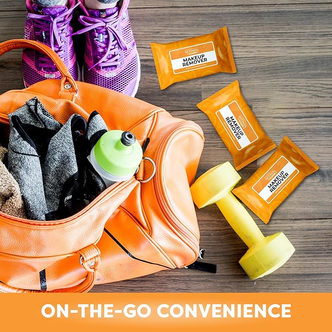 Retinol + Vitamin C Individually Wrapped Makeup Remover Wipes, travel essentials for Travel & On the Go, women facial cleansing towelettes, removes makeup mascara & sunscreen - 30 single face wipes