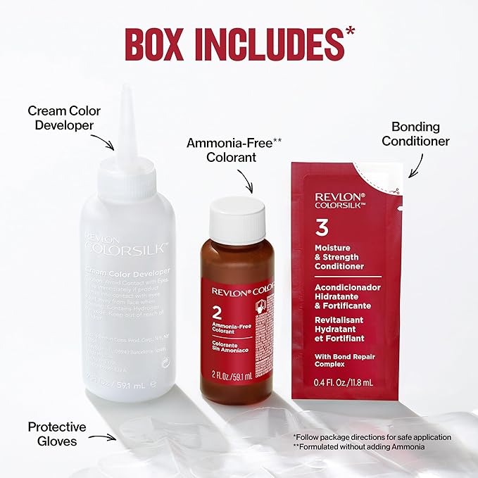 - WORKS ON ALL HAIR: This no-mess, no-drip formula works on all hair types and textures. **Formulated without adding Ammonia Revlon Consumer Products Corporation’s calculation based in part on data reported by Circana, LLC, through its OmniMarket Service of Total US Multi-Outlet for Women’s Hair Coloring Category for the 52 week period ending 3-24-2024 using Revlon’s custom definitions.