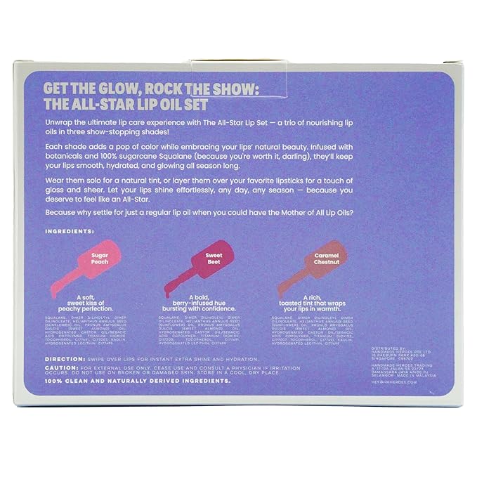 - ULTRA GLOSSY TINTED LIP OIL - 3 pack Squalane enriched lip oil set that delivers a nourishing hydration boost leaving lips silky smooth & supple. In a range of universally flattering shades that gives a high shine finish to match any look