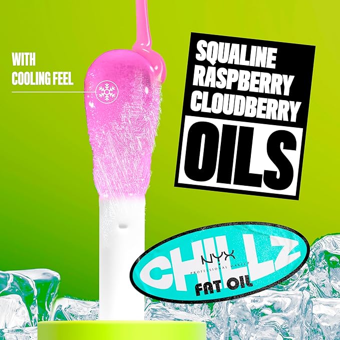 NYX PROFESSIONAL MAKEUP Fat Oil Chillz, Moisturizing, Shiny and Vegan Tinted Lip Gloss - Strawberry Slush (Sheer Pinkish Purple)