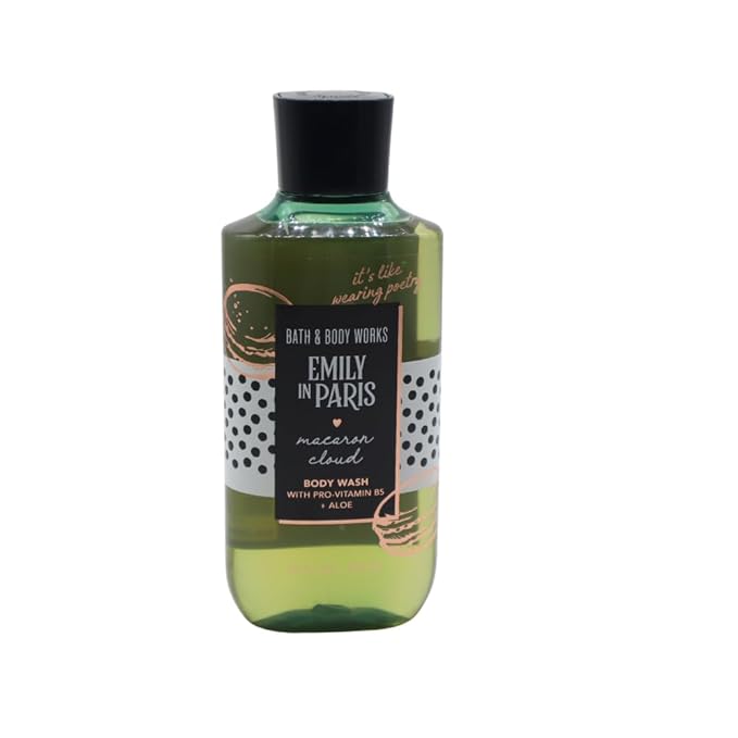 - Bath & Body Works Emily in Paris Macaron Cloud Body Wash - A gentle, non-drying formula that nourishes the skin. It is a rich, bubbly lather made with Pro-Vitamin B5 and aloe.