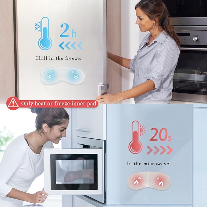 - Cold and Hot Therapy Options: Equipped with both a Gel Pad and Microwavable Flaxseed Pad, this eye mask provides versatility with two therapeutic options. The warm compress for eyes reduces puffiness and soothes tired eyes, while the hot therapy option promotes relaxation and alleviates tension. Easy to use, choose the therapy that suits your preference.