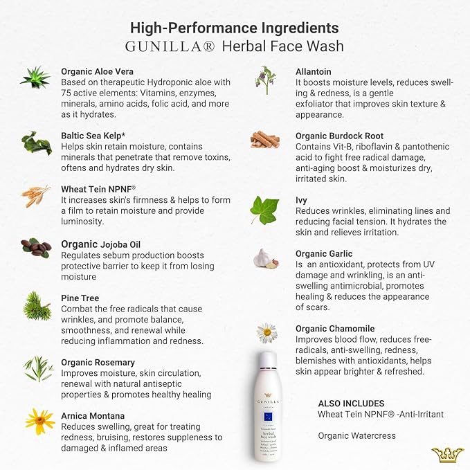 GUNILLA Face Wash Herbal, Anti-Aging Cream Cleanser GUNILLA