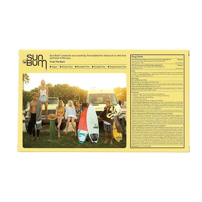 - Includes (1) Sun Bum Moisturizing Sunscreen Lotion, SPF 30, 3oz Tube, (1) Sun Bum Sunscreen Lip Balm, Coconut, SPF 30, and (1) Sun Bum Cool Down Hydrating After Sun Lotion, 3oz Tube